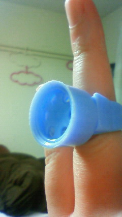 【見た目】指にはめるタイプ。プラスチック製。プロペラのようなものがついていて、そこに息を吹き掛ける。